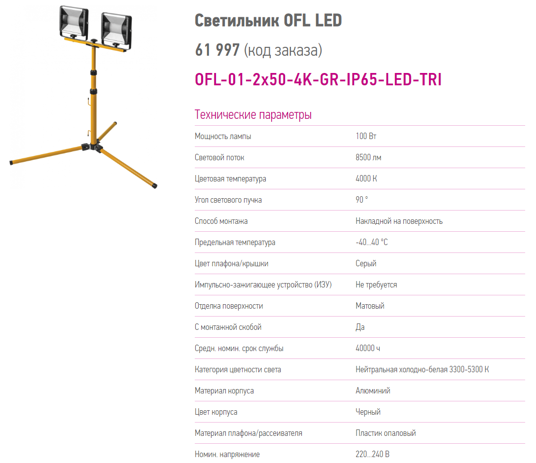 OFL-01-2x50-4K-GR-IP65-LED-TRI